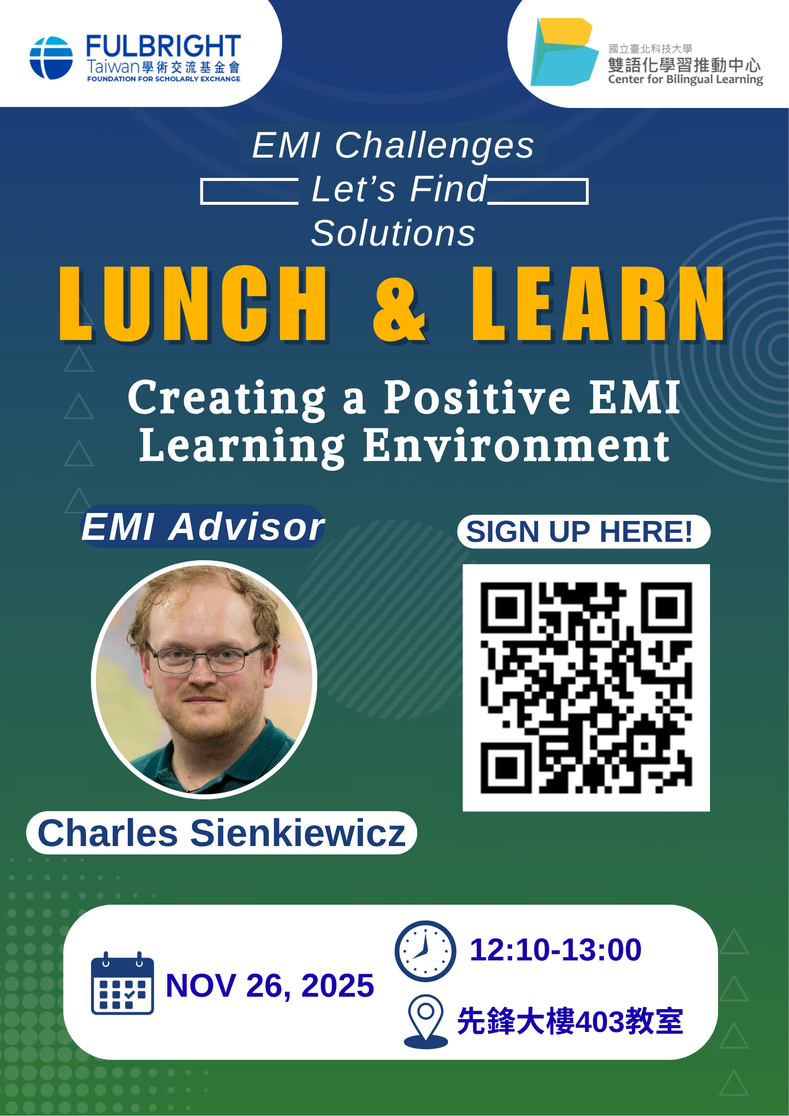 國立臺北科技大學雙語化學習推動中心辦理「Lunch and Learn: EMI Challenge Series-Let's Find Solutions」