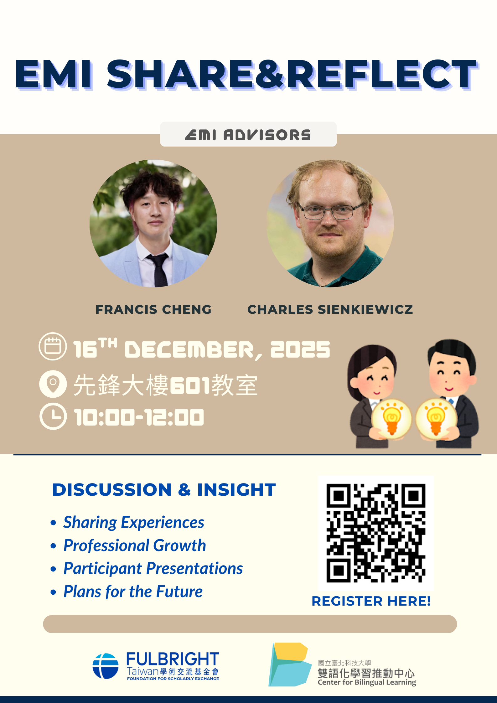 國立臺北科技大學雙語化學習推動中心於114年12月16日辦理「Share & Reflect教學分享會」