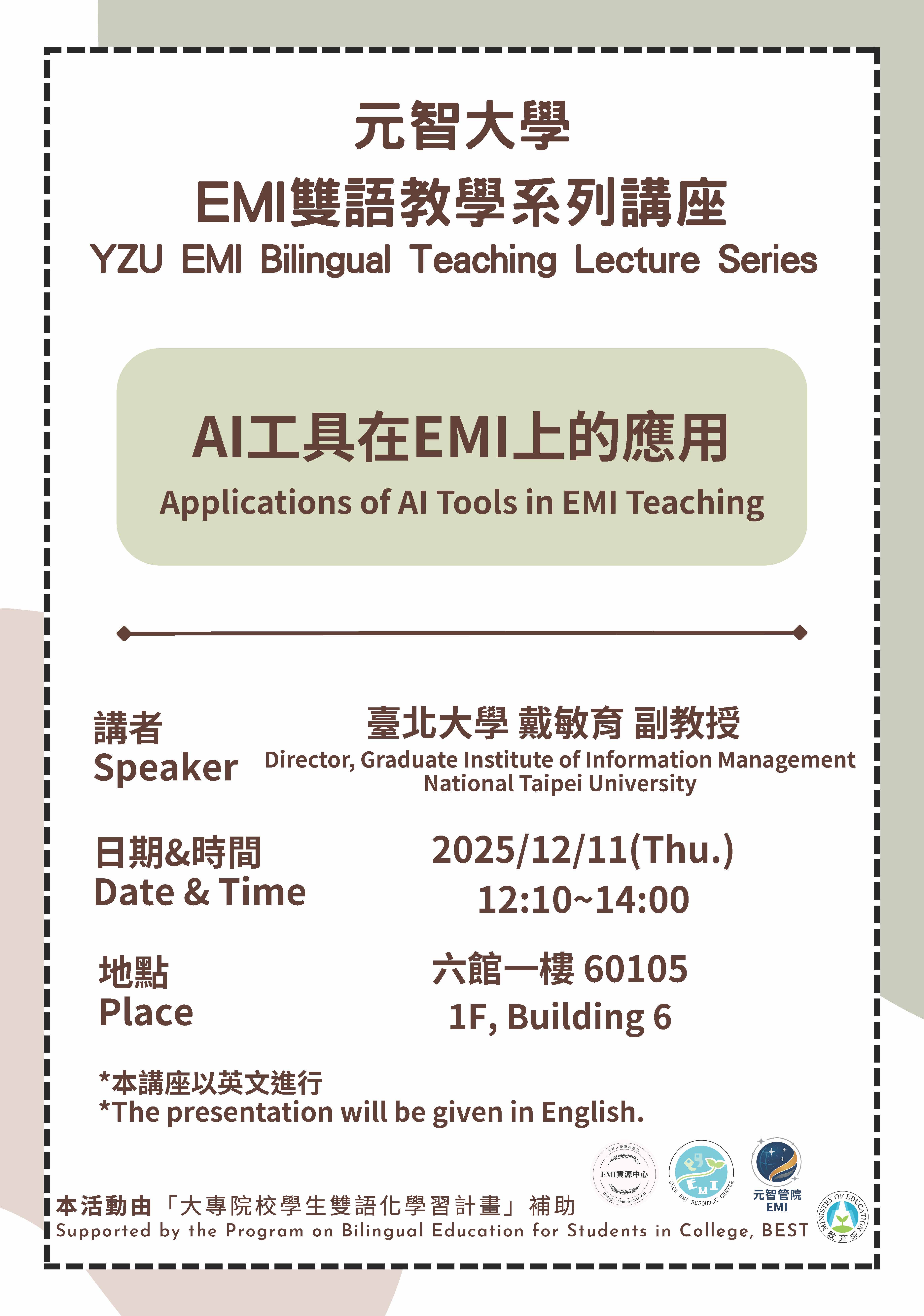 元智大學於114年12月11日辦理114學年度第1學期「EMI雙語教學系列講座」
