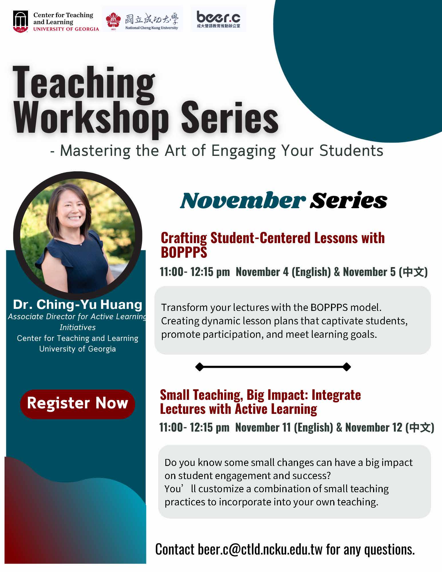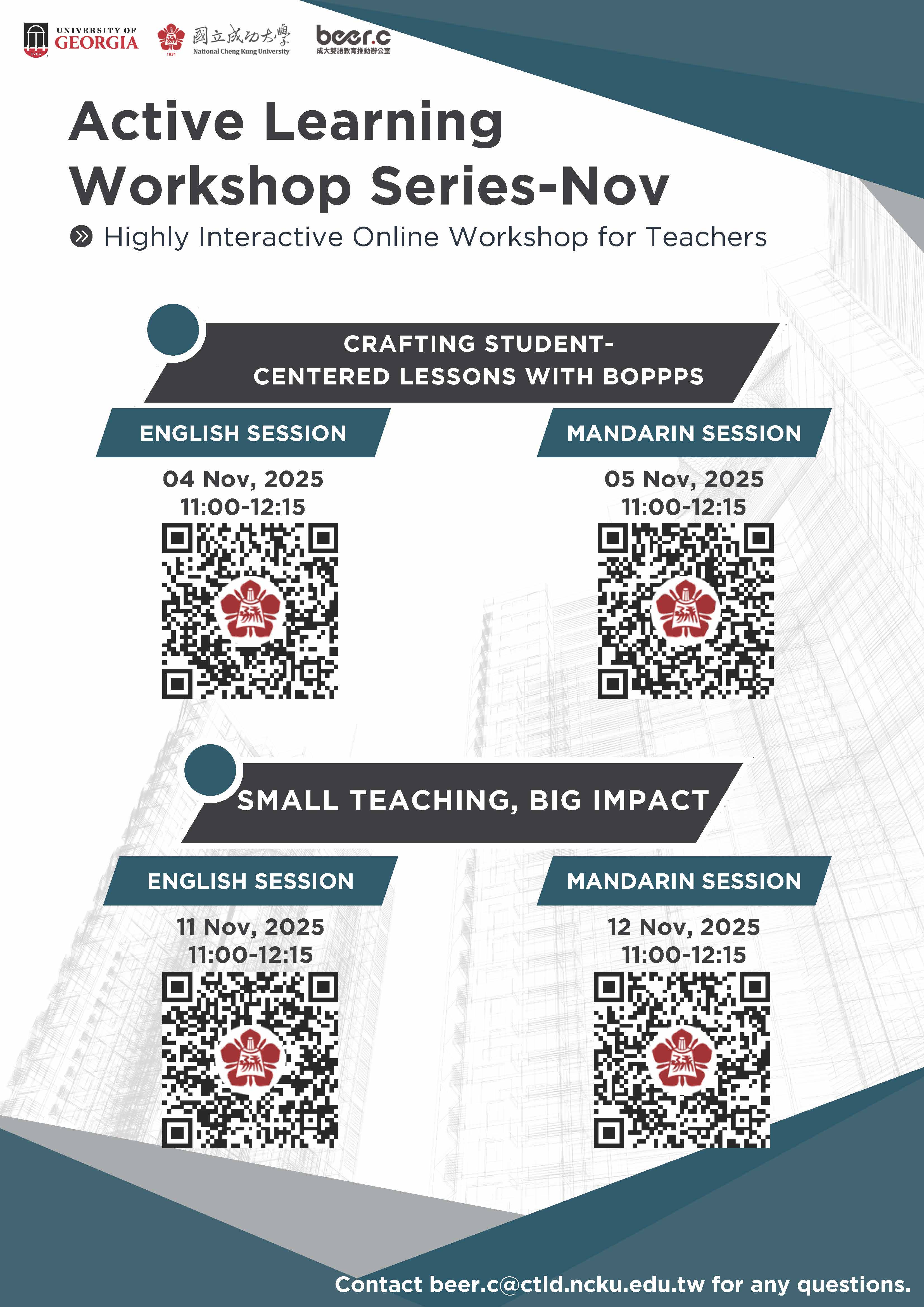 國立成功大學雙語教育推動辦公室辦理全國大專校院EMI教學線上增能工作坊-Active Learning Workshop Series for Teachers-Nov